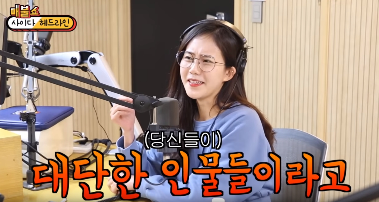 정영진과 최욱을 상대로 '뭘 그렇게 대단한 인물들이라고' 라며 여유만만하게 웃어넘기는 능력을 보면 진행자로써도 탁월한 감각을 가진 사람이라고 생각이 들었습니다. 매불쇼에서 나오는 모습들을 보면 예쁜 외모와 다양한 표정 그리고 화려한 입담까지 남녀노소 그녀를 좋아하지 않을 수 없을꺼라는 생각이 듭니다.