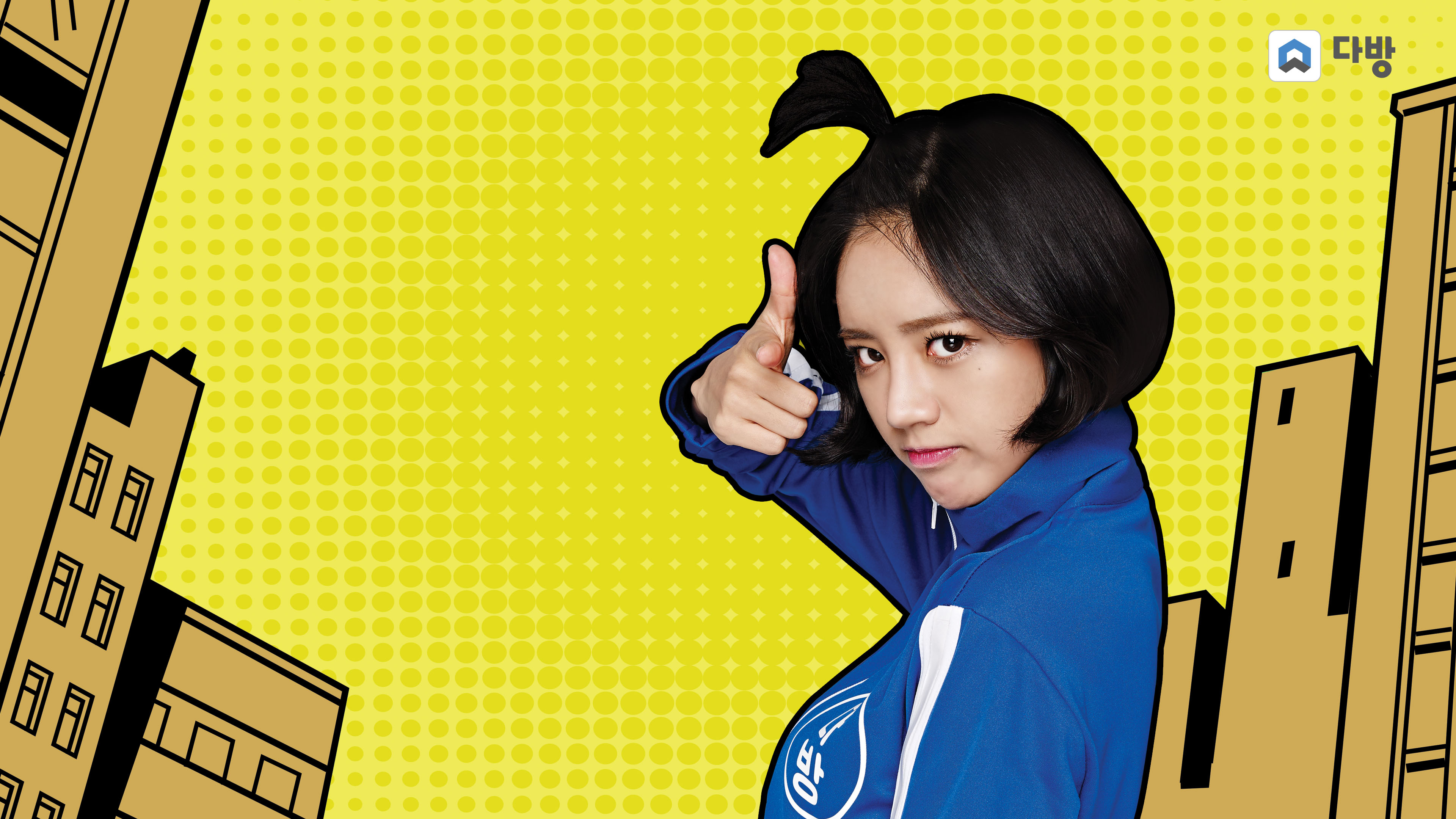 다방에서 제공하는 혜리의 스마트폰용 바탕화면입니다. 익살스러운 혜리의 표정들이 살아있는 귀여운 배경화면들이네요. 스마트폰용으로 제작된 세로형과 PC용으로 제작한 가로형태의 바탕화면이 각각 4종씩 제공되었습니다.