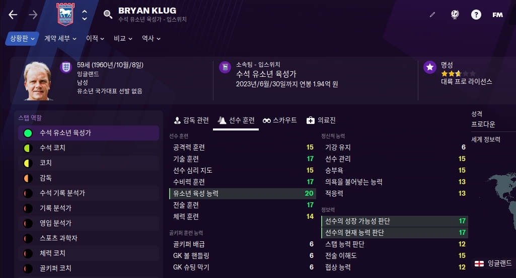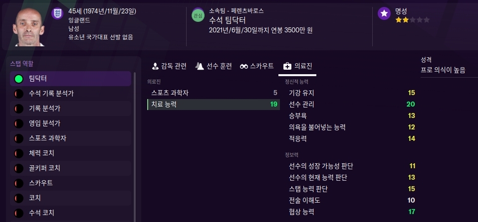 FM2021 팀닥터 / 스포츠과학자